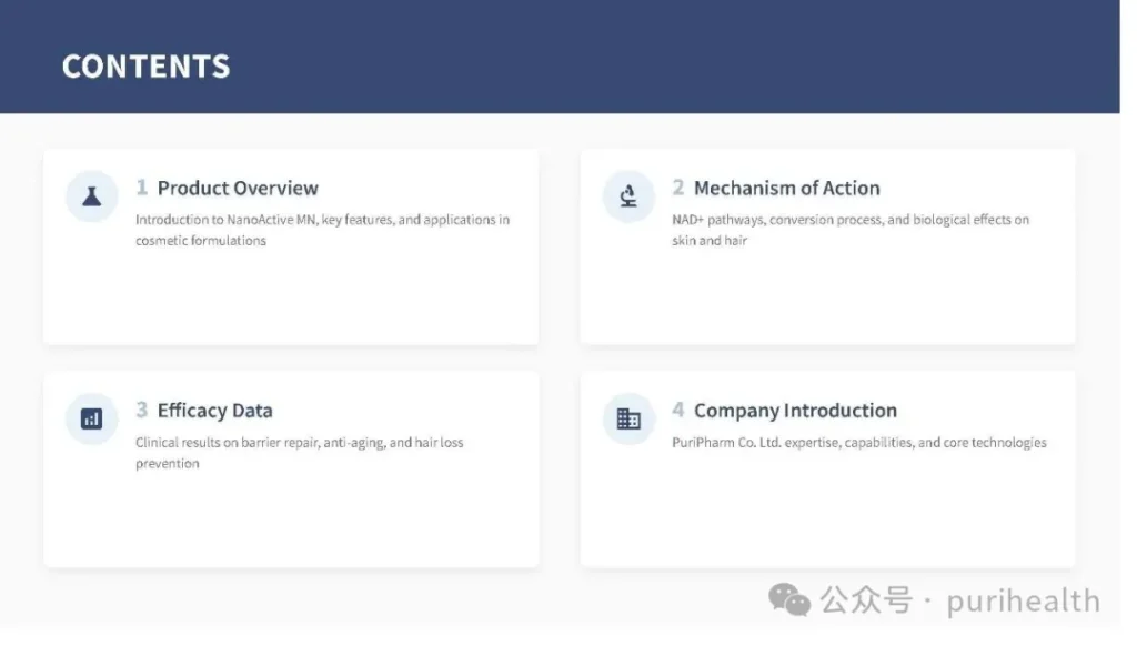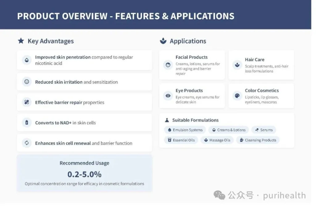 If you are Chinese, or if reading in Chinese is more convenient for you, you can access the Chinese product introduction PPT through this link.纳米包裹肉豆蔻醇烟酸酯