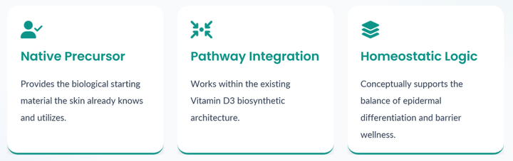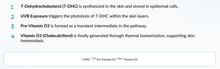 7-dehydrocholesterol (7-DHC) is a skin-native precursor produced naturally in the human epidermis.