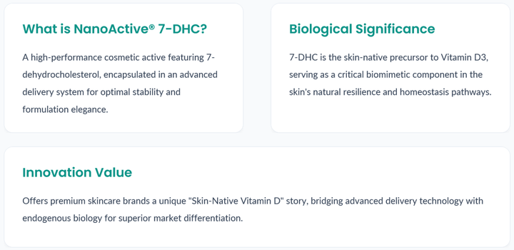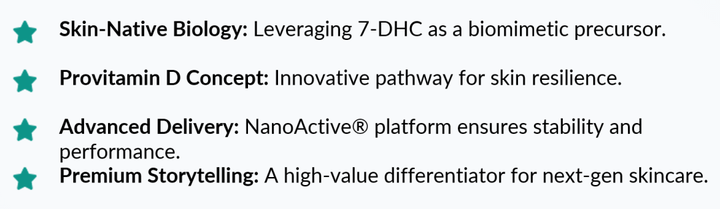 NanoActive® 7-DHC represents more than an ingredient—it is abiological platformfor brands seeking the next frontier in skin resilience.